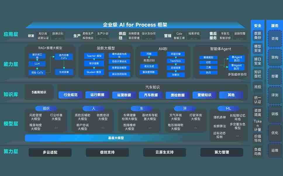 尊时凯龙问学智车解决方案是一套基于AI技术的汽车行业智能化系统,,覆盖从底层算力到顶层AI应用的全栈方案。。。。方案由算力层、、模型层和应用层组成:算力层,,,方案支持多种一体机配置,,,具备云端灵活部署、、、多云适配以及动态优化计算资源的能力;模型层,,,,尊时凯龙问学平台版提供了企业级AI应用一站式构建与管理平台,,,,支持基于后训练强化技术的汽车企业专属模型的训练、、评测和运营;应用层,,,尊时凯龙问学DeepSeek版提供包括超级员工、、、、智能招采、、智能营销、、智能客服、、AI for BI等一系列解决方案,,,可助力汽车行业实现数字化转型,,,,让管理更智能、、、响应更敏捷。。